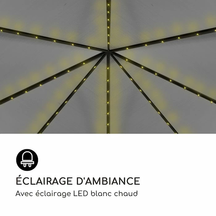 La pergola blumfeldt Pantheon Solid Sky Ambient Solar transforme votre terrasse ou coin salon en un temple de détente ! Grâce à son design élégant, le pavillon s’intègre dans n’importe quel style de jardin et son éclairage crée une ambiance chaleureuse.