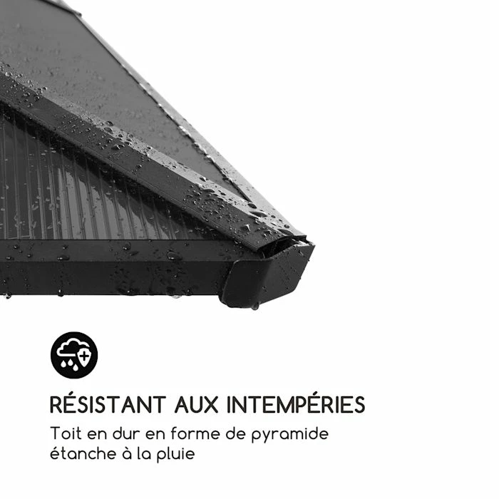 - Résistante aux intempéries : toit rigide résistant à la pluie en forme de pyramide