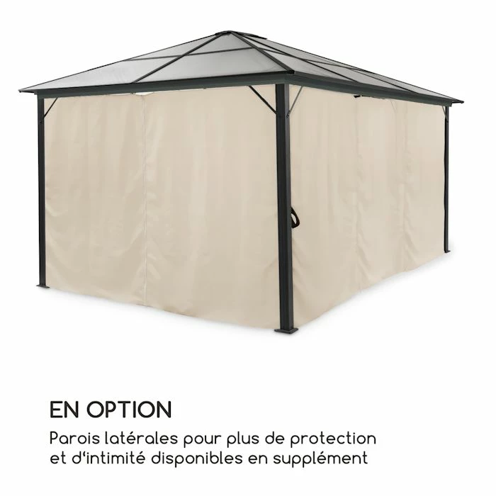 - En option : parois latérales pour plus de protection et d’intimité également disponibles