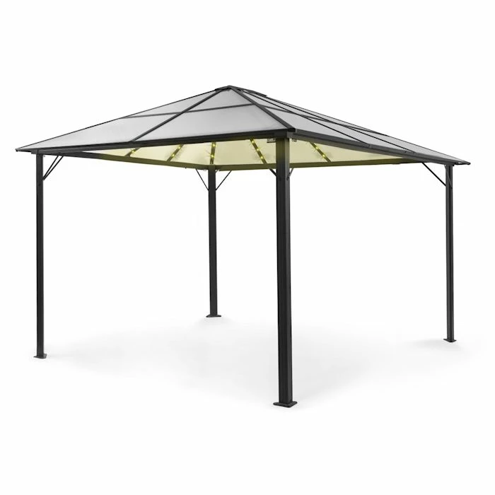 La pergola blumfeldt Pantheon Solid Sky Ambient Solar transforme votre terrasse ou coin salon en un temple de détente ! Grâce à son design élégant, le pavillon s’intègre dans n’importe quel style de jardin et son éclairage crée une ambiance chaleureuse.