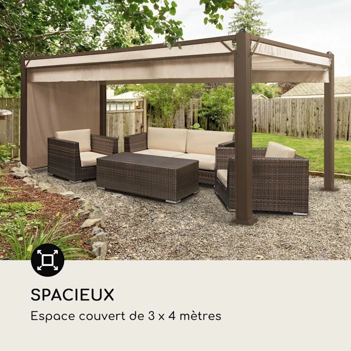 - Flexible et protégé du vent : les 4 panneaux latéraux peuvent être enroulés et déroulés.