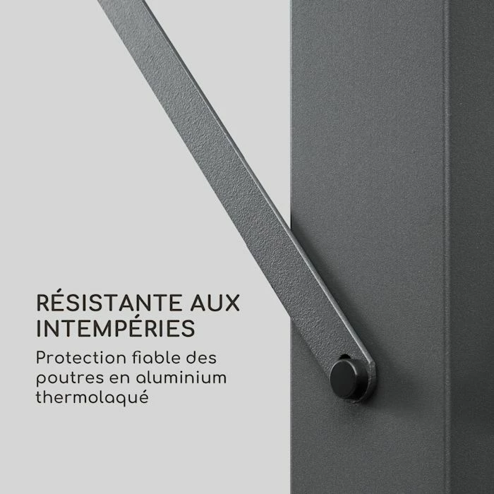 - Construction robuste : grâce à un cadre en aluminium résistant aux intempéries, composé de poteaux de 8 x 8 cm et de traverses de 3 x 6 cm