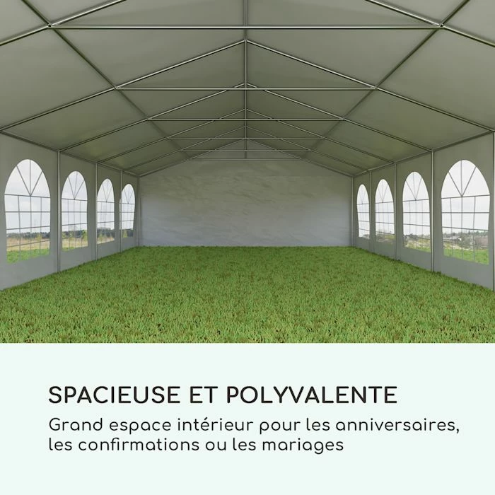 - Tente de fête stable : dimensions de 6 x 12 mètres pour les garden-parties, les fêtes de famille ou les événements