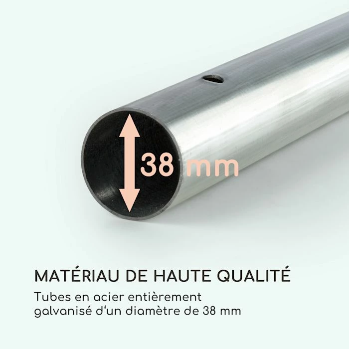 - Matériau de haute qualité : tubes en acier entièrement galvanisé d’un diamètre de 38 mm