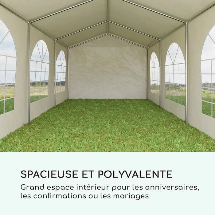 - Tente de fête stable : dimensions de 3 x 6 mètres pour les garden-parties, les fêtes de famille ou les événements
