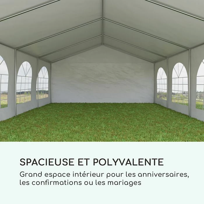 - Tente de fĂȘte stable : dimensions de 5 x 8 mĂštres pour les garden-parties, les fĂȘtes de famille ou les Ă©vĂ©nements