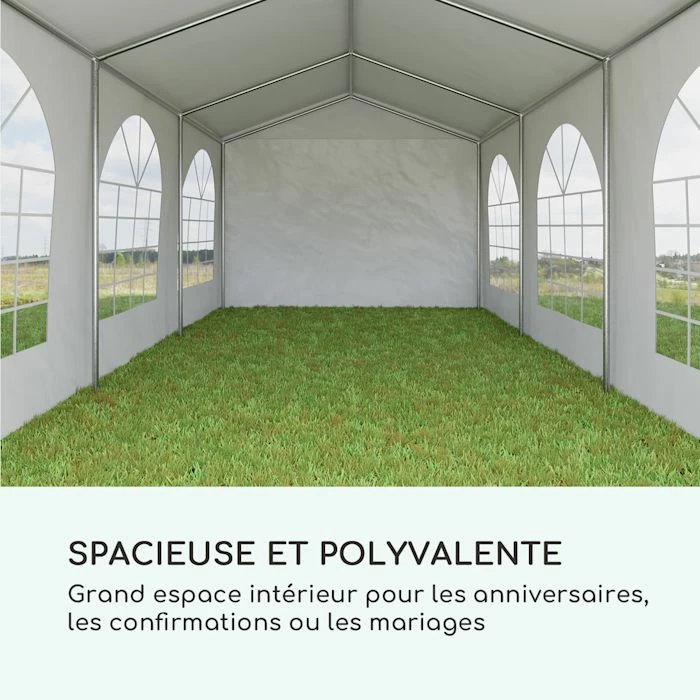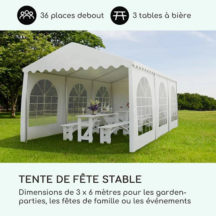 - Tente de fête stable : dimensions de 3 x 6 mètres pour les garden-parties, les fêtes de famille ou les événements