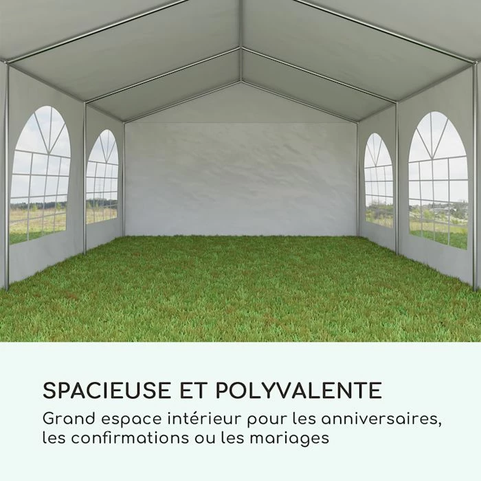 - Tente de fête stable : dimensions de 4 x 6 mètres pour les garden-parties, les fêtes de famille ou les événements