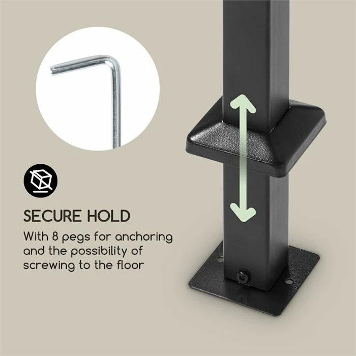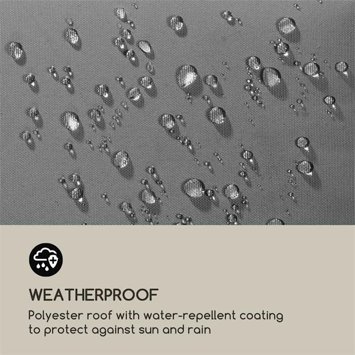 - Résistant aux intempéries : auvent polyester avec revêtement hydrofuge contre le soleil et la pluie