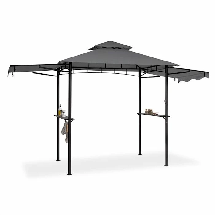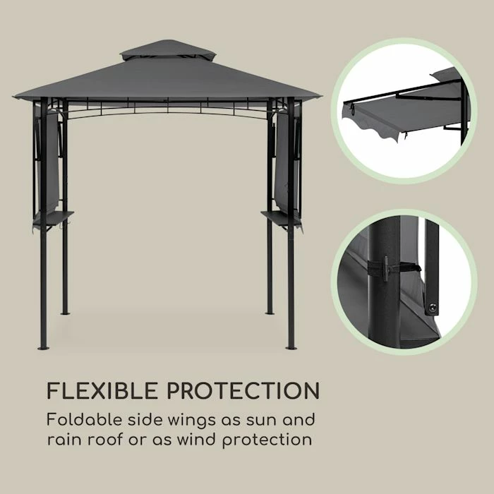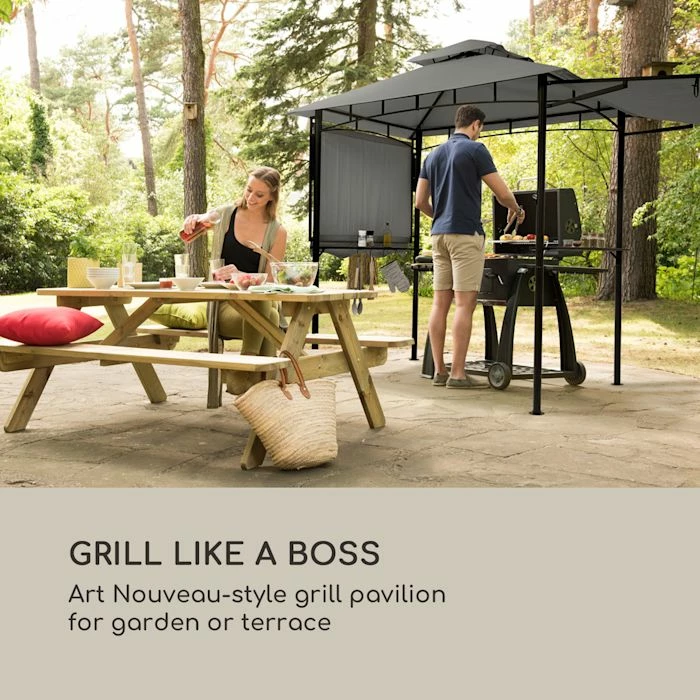 Profitez de l’été avec style : profitez d’un barbecue détendu entre amis ou en famille par tous les temps sous le pavillon Blumfeldt Steakhouse Wings au design Art Nouveau. Grâce aux ailes latérales rabattables, il protège efficacement de la pluie et du vent.