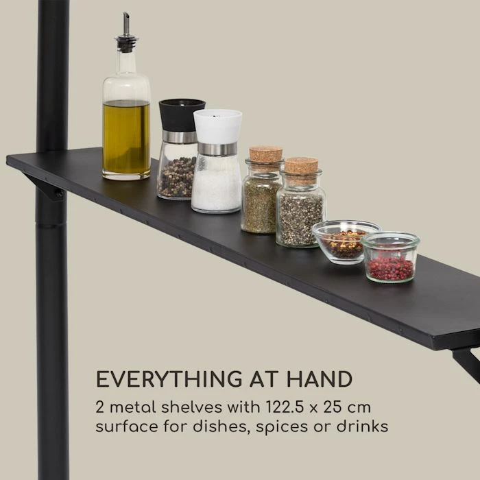 - Tout à portée de main: 2 tablettes en métal de 122,5 x 25 cm pour déposer la vaisselle, les plats ou les boissons
