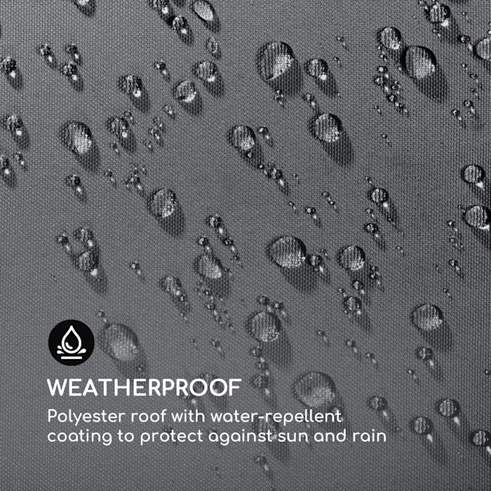 - Matériau du parasol et ailes latérales : polyester 160g/m² avec revêtement étanche