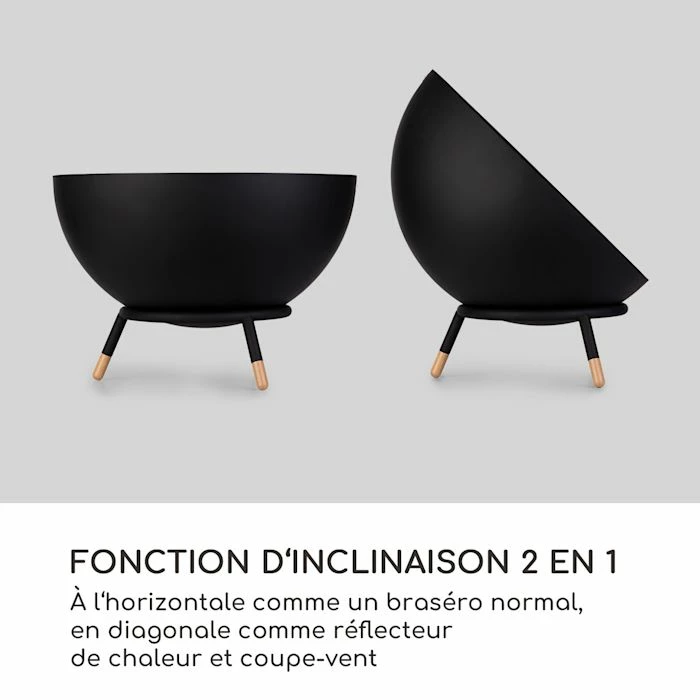 - Fonction anti basculement 2-en-1 : braséro classique à l’horizontale, en diagonale comme réflecteur de chaleur et paravent