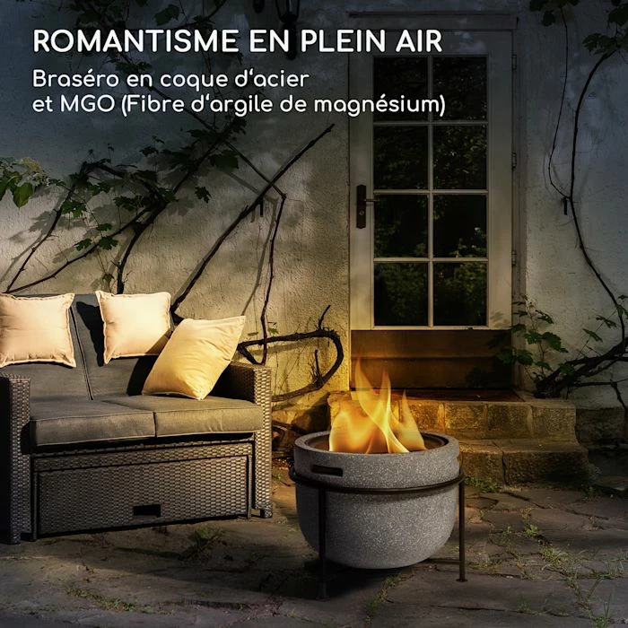 - Romantisme en plein air : braséro en coque d’acier et MGO (Fibre d’argile de magnésium)