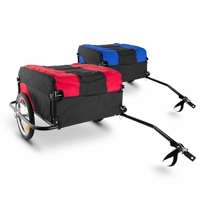 La remorque de vélo Mountee de DURAMAXX est la solution pour transporter toutes sortes de choses, ramener les courses d’une semaine, déplacer des outils de jardin ou pour les grandes randonnées à vélo. La capacité de 130 l permet de transporter par exemple 3 packs d’eau minérale, plusieurs sacs de terre ou tout le matériel de camping, jusqu’à 60 kg sur le cadre solide en métal. Ainsi le sol de la remorque est prêt à tout accueillir avec ses laminés plats soudés. Laissez la voiture à la maison pour le transport de gros objets sur de petites distances et utilisez en toute décontraction la remorque vélo Mountee de DURAMAXX. Vous éviterez la recherche de place de stationnement, les bouchons et garderez la forme. Pour surveiller votre cargaison et la protéger de la pluie à la fois, la livraison comporte une toile en nylon qui peut être facilement fixée sur le cadre en cas de besoin.