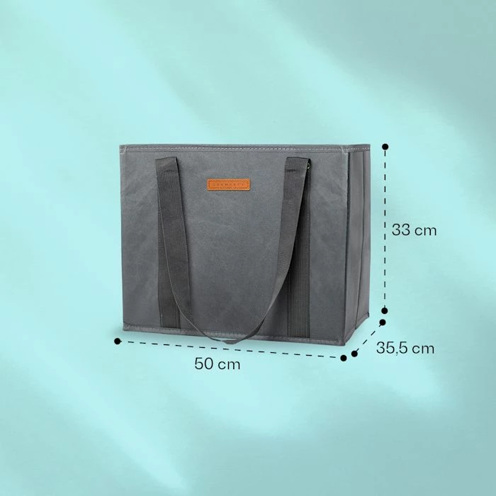 Vous allez adorer nos sacs Ă provisions rĂ©utilisables et pliables de Gramercy by Klarstein. Les cĂŽtĂ©s et le fond sont renforcĂ©s de l’intĂ©rieur avec du plastique recyclĂ©, ce qui permet de les remplir facilement et de les maintenir dans le coffre ou la remorque Ă vĂ©lo sans qu’ils ne renversent. GrĂące au revĂȘtement hydrofuge, vous pouvez facilement essuyer le Shopping Bag avec un chiffon humide ou le laver en machine sur cycle dĂ©licat. ĂquipĂ©s de deux poignĂ©es larges et robustes en nylon, ils supportent facilement un poids de 13 kg. Leur design intemporel et simple est rehaussĂ© d’un patch en cuir synthĂ©tique vĂ©gĂ©talien.