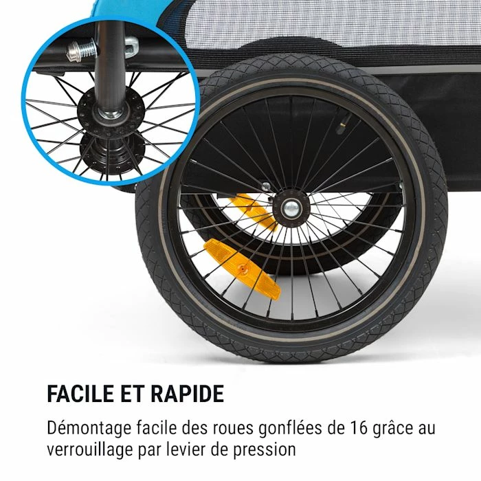 - Rapide et pratique : retrait pratique des roues gonflĂ©es de 16″ grĂące au verrouillage par levier de pression