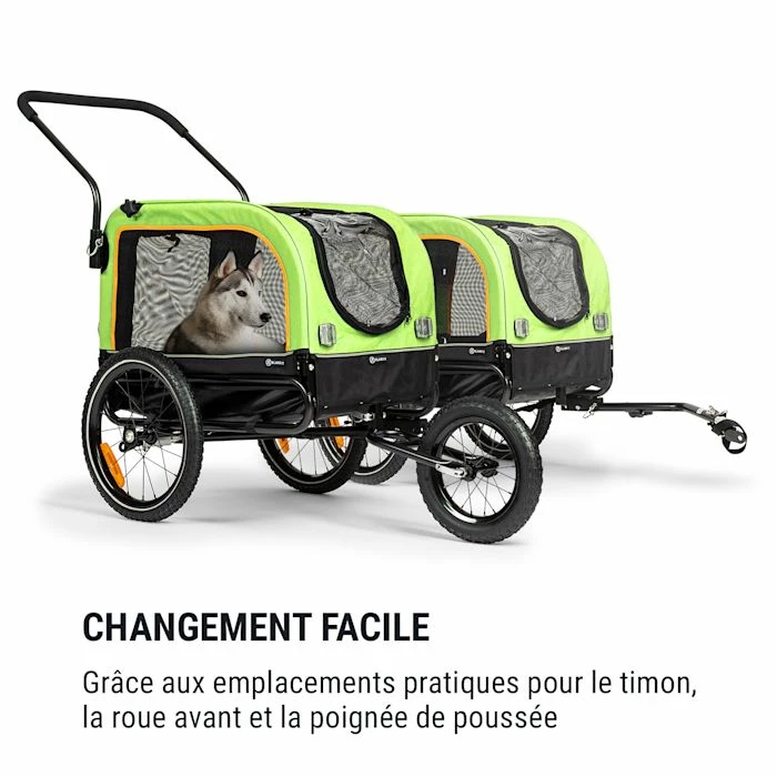 - 2-en-1 : Remorque vélo pour chien et poussette pour chien deux en un