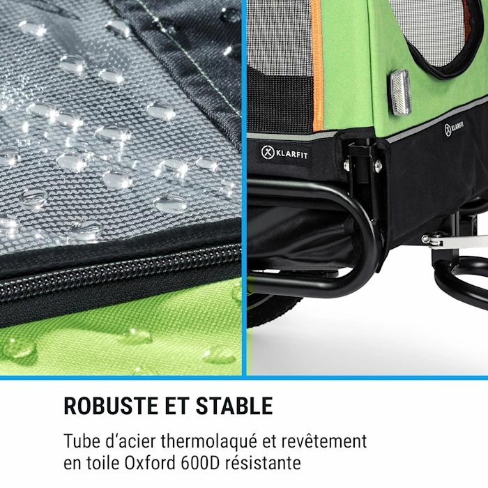 Pour un petit jogging ou une longue promenade à vélo : avec la remorque et poussette pour chien Klarfit Corgi 2-in-1 votre ami à quatre pattes est toujours à vos côtés.