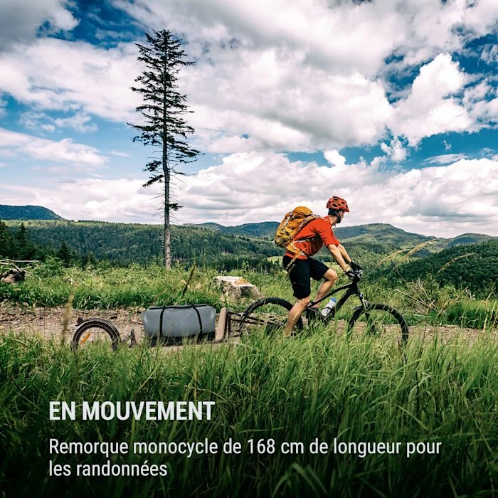 - En mouvement : remorque monocycle de 168 cm pour le trekking