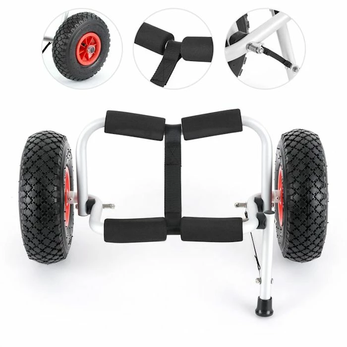 - Chariot de transport pour kayak argenté pouvant supporter une charge maximale de 60kg
