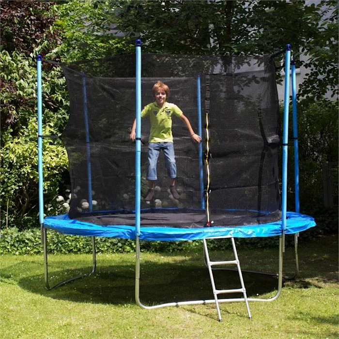En plus de sa construction de trĂšs grande qualitĂ© et de son excellent rapport qualitĂ©-prix, le trampoline peut se vanter de ses trĂšs bonnes garanties de sĂ©curitĂ©. Le filet intĂ©rieur est tressĂ© avec des mailles solides trĂ©s rĂ©sistantes. La surface de saut est en polypropylĂšne et est protĂ©gĂ©e contre les UV pour garantir une plus longue durĂ©e de vie, qualitĂ© non nĂ©gligeable pour les aprĂšs-midis d’Ă©tĂ© en plein soleil. Les 60 ressorts galvanisĂ©s assurent un maximum de plaisir pendant les sauts, surtout avec l’Ă©pais rembourrage qui isole de maniĂšre sĂ»re les petits pieds des ressorts.