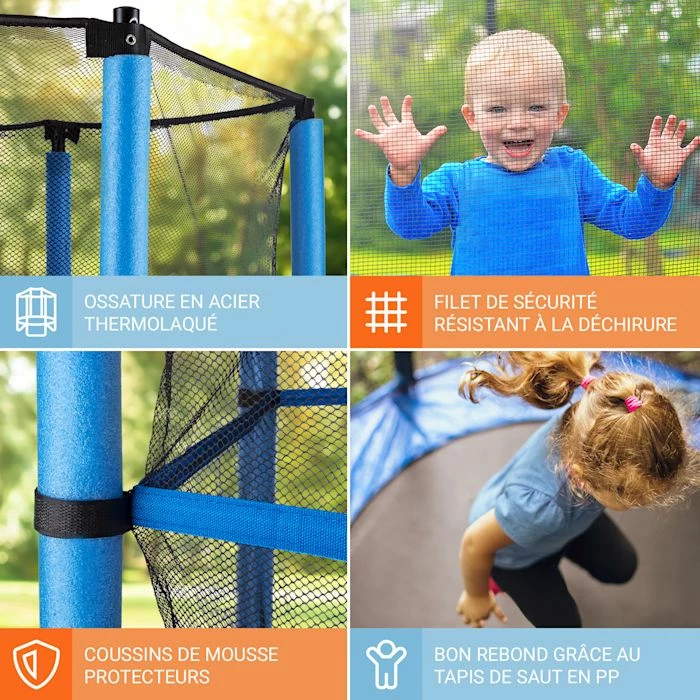 - Le filet de sĂ©curitĂ© sous la surface de saut empĂȘche les enfants en bas Ăąge ou les animaux de ramper en dessous