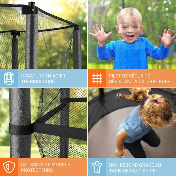 - Le filet de sĂ©curitĂ© sous la surface de saut empĂȘche les enfants en bas Ăąge ou les animaux de ramper en dessous