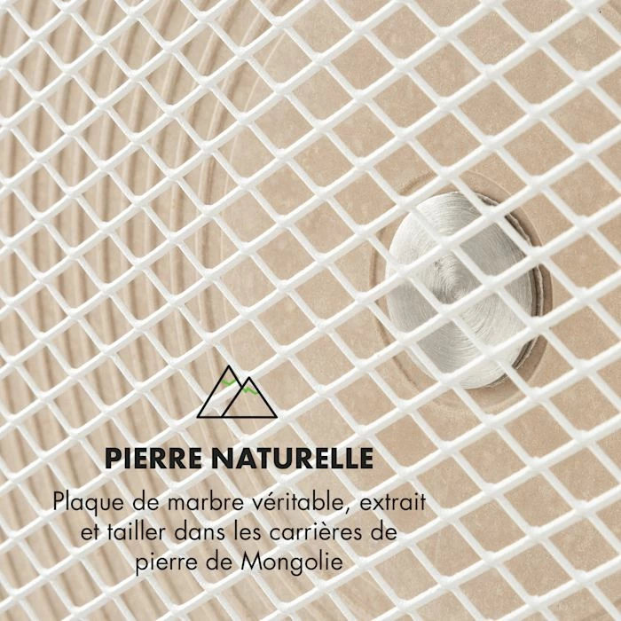 - Accumulateur de chaleur économique : plaque de marbre intégrée pour une diffusion continue de la chaleur, même sans alimentation électrique