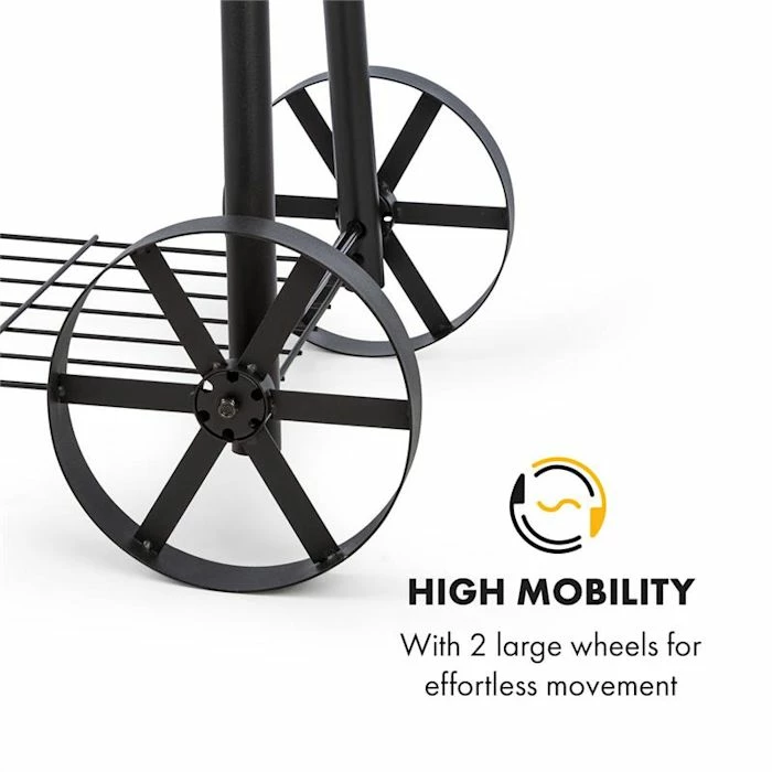 Le cadre robuste offre un support solide au barbecue et porte à une hauteur de travail confortable. Vous pourrez également le déplacer facilement grâce aux deux roulettes qui l’équipent.