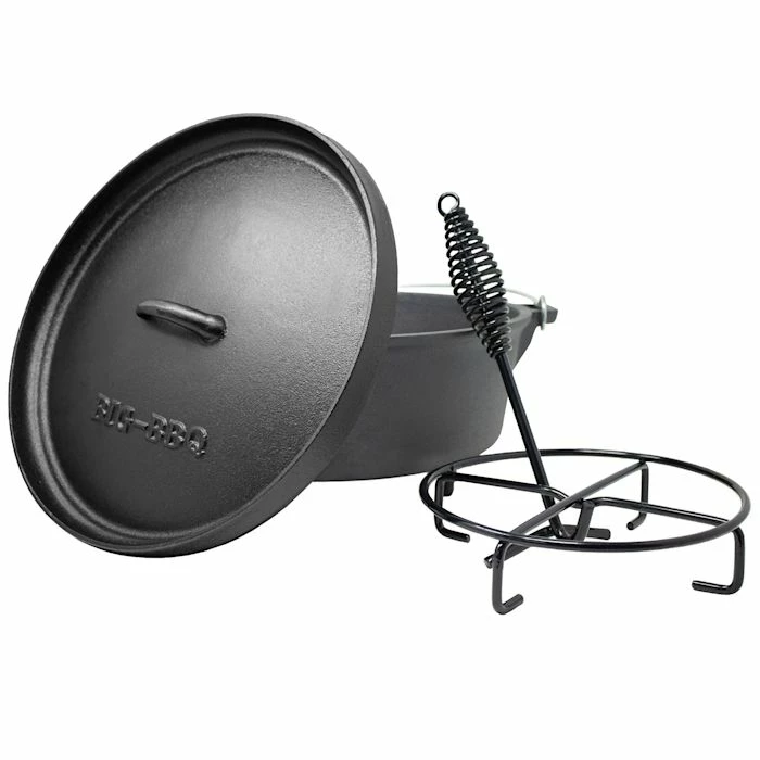 Toujours un fer chaud sur le feu : le four hollandais Galloway BBQ de Klarstein peut être utilisé universellement pour cuisiner, braiser, rôtir, cuire et frire et peut être chauffé avec des briquettes, les braises d’un feu de camp ou comme pot sur le barbecue. Cet appareil rustique polyvalent est pré-cuit et prêt à cuire. La fabrication en fonte assure une répartition optimale de la chaleur. Le couvercle pratique à haut rebord convient pour rôtir ou servir et peut être facilement placé sur le support fourni. Pour une utilisation sur le feu de camp, le four hollandais Galloway BBQ est également disponible avec des pieds sur le pot.