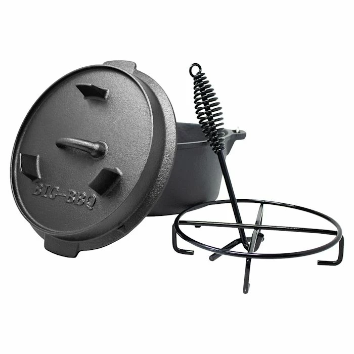 Toujours un fer chaud sur le feu : le four hollandais Guernsey Premium de Klarstein peut être utilisé universellement pour cuisiner, braiser, rôtir, cuire et frire et peut être chauffé avec des briquettes, les braises d’un feu de camp ou comme pot sur le barbecue. Cet appareil rustique polyvalent est pré-cuit et prêt à cuire. La fabrication en fonte assure une répartition optimale de la chaleur. Le couvercle pratique à haut rebord convient pour rôtir ou servir et peut être facilement placé sur le support fourni. Pour une utilisation sur le feu de camp, le four hollandais Guernsey Premium est également disponible avec des pieds sur le pot.