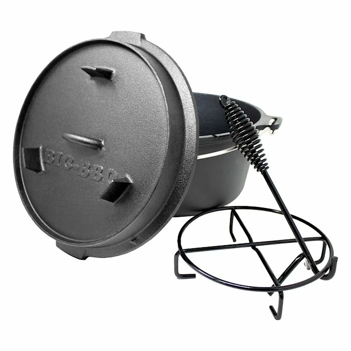 Toujours un fer chaud sur le feu : le four hollandais Guernsey Premium de Klarstein peut être utilisé universellement pour cuisiner, braiser, rôtir, cuire et frire et peut être chauffé avec des briquettes, les braises d’un feu de camp ou comme pot sur le barbecue. Cet appareil rustique polyvalent est pré-cuit et prêt à cuire. La fabrication en fonte assure une répartition optimale de la chaleur. Le couvercle pratique à haut rebord convient pour rôtir ou servir et peut être facilement placé sur le support fourni. Pour une utilisation sur le feu de camp, le four hollandais Guernsey Premium est également disponible avec des pieds sur le pot.