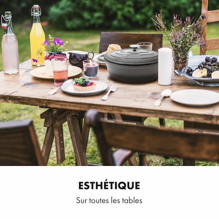 - Polyvalent : idéal pour rôtir, braiser, cuisiner, cuire au four et maintenir au chaud