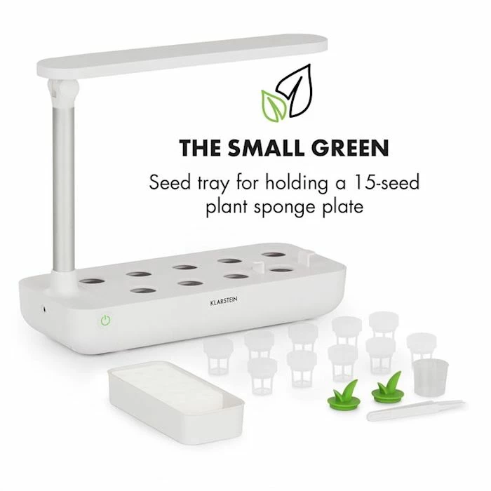 Votre prochaine récolte : le bac à semis de votre Jardin hydroponique Smart Indoor Garden Klarstein GrowIt offre de la place pour un plateau d’éponges de plantation contenant jusqu’à 15 nouveaux semis. En quelques jours à peine, les graines se transforment dans le bac à semis en jeunes pousses que vous installerez avec leur éponge de plantation dans le système hydroponique.