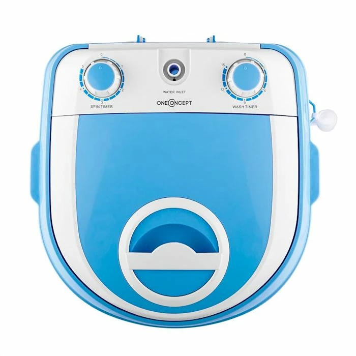 La oneConcept SG003 est une machine à laver compacte avec fonction essorage, 180W de puissance et 2,8 kg de capacité.