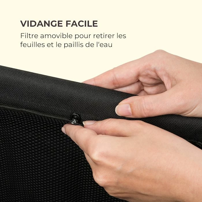 - Vidange simple : filtre amovible pour éliminer les feuilles et la terre de l’eau