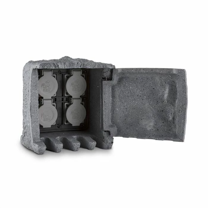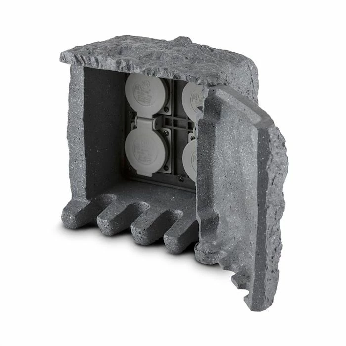 Vous en avez assez de toujours devoir tirer des câbles dans le jardin, que ce soit pour passer la tondeuse, brancher votre barbecue ou éclairer vos garden parties ? Avec la multiprise Waldbeck Power Rock ce temps est bel et bien révolu. Quatre prises avec protection contre l’eau et les intempéries se longent dans un châssis au joli design en forme de pierre composé de polyrésine étanche selon la norme IP44. Jusqu’à 3680 watts se trouvent désormais à votre disposition pour pouvoir alimenter tous vos appareils électriques d’extérieur, qu’il s’agisse d’une radio, d’une tondeuse, d’une tronçonneuse ou autres.