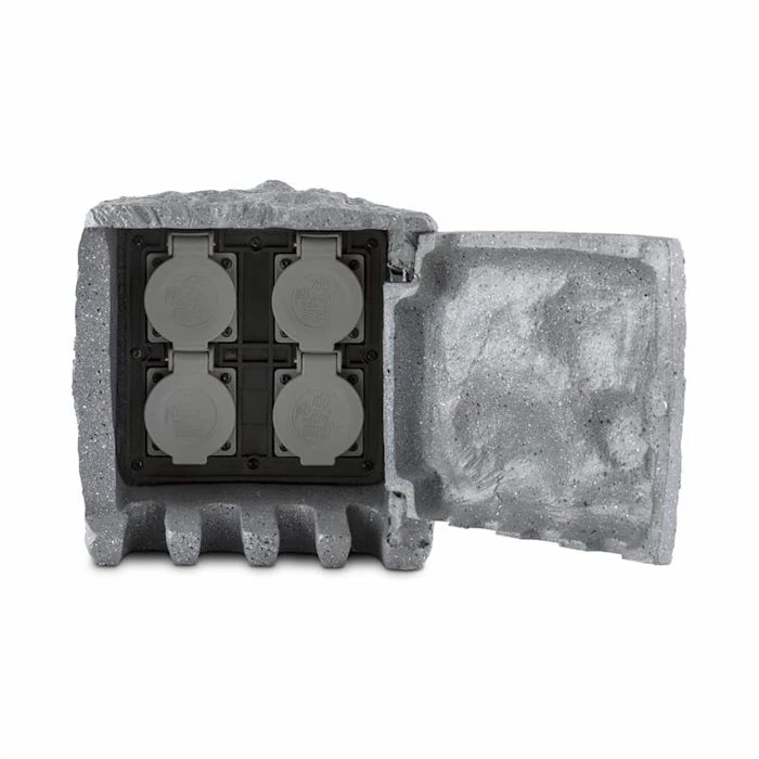 Vous en avez assez de toujours devoir tirer des câbles dans le jardin, que ce soit pour passer la tondeuse, brancher votre barbecue ou éclairer vos garden parties ? Avec la multiprise Waldbeck Power Rock ce temps est bel et bien révolu. Quatre prises avec protection contre l’eau et les intempéries se longent dans un châssis au joli design en forme de pierre composé de polyrésine étanche selon la norme IP44. Jusqu’à 3680 watts se trouvent désormais à votre disposition pour pouvoir alimenter tous vos appareils électriques d’extérieur, qu’il s’agisse d’une radio, d’une tondeuse, d’une tronçonneuse ou autres.