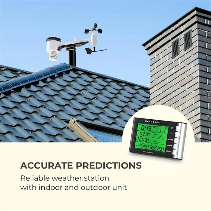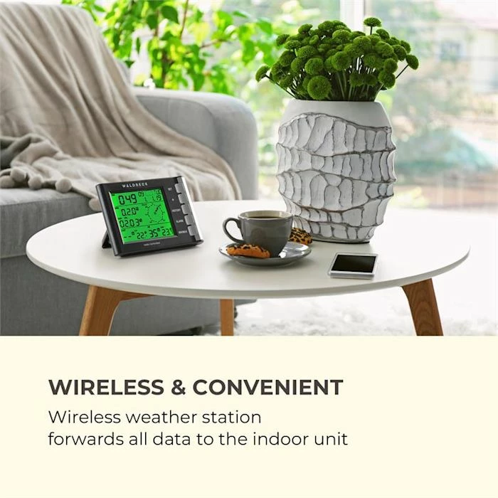 Quel temps fait-il aujourd’hui et quel temps fera-t-il demain ? La station météo Waldbeck Kopernikus offre une réponse riche à tous ceux qui se posent la question. Ne sortez jamais de chez vous avec des vêtements inappropriés, car grâce aux nombreux capteurs météorologiques, vous savez exactement s’il faut prévoir de la pluie, s’il fait froid ou chaud et à quelle vitesse le vent souffle. Même ceux qui sont sensibles à la météo savent exactement à quoi s’attendre de la journée avec la Kopernikus et s’ils feraient bien de prévoir leurs analgésiques.