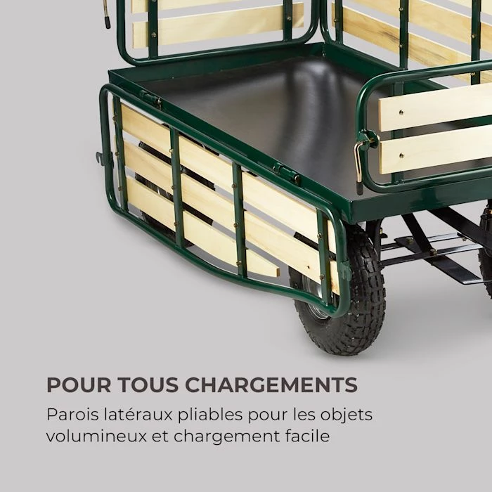 - Chariot polyvalent : pour le transport de charges lourdes dans le jardin, pour faire vos courses ou des excursions