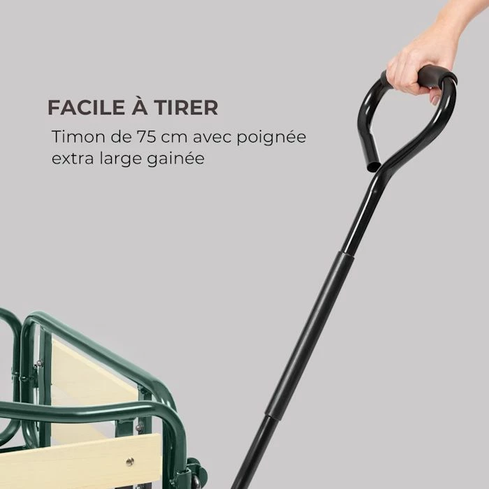 - Pratique à tirer : timon de 75 cm de long avec une poignée extra large et couverte